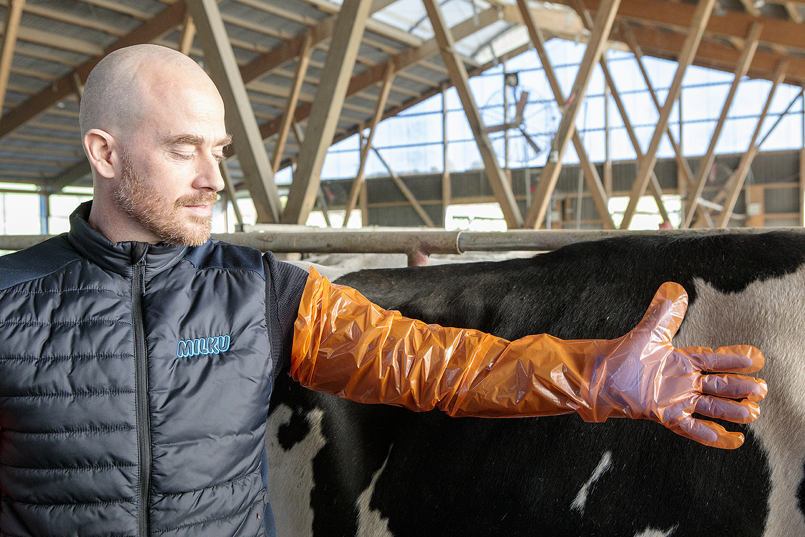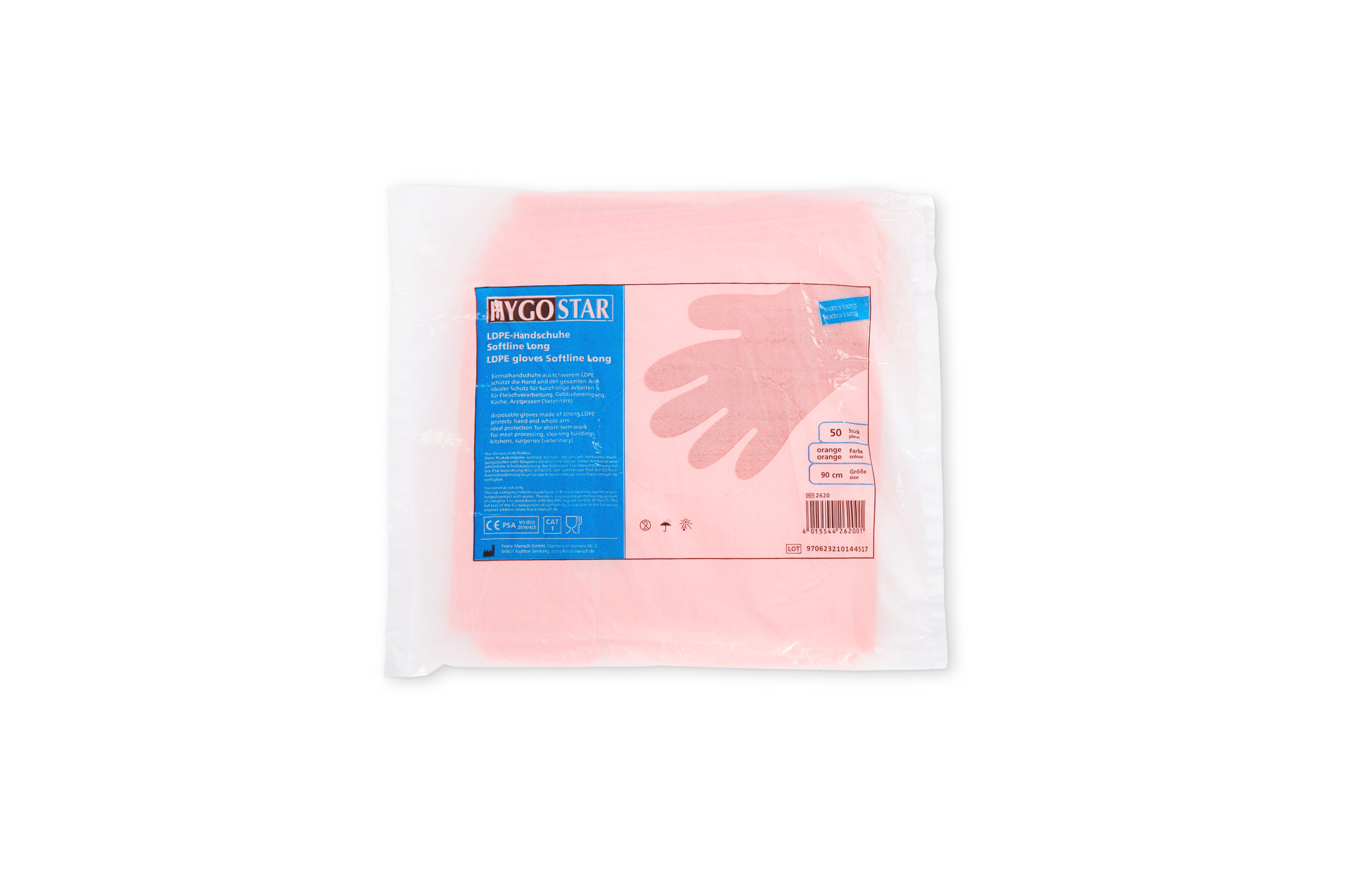 Die schulterlangen Einweghandschuhe (Länge: 90 cm) sind aus schwerem LDPE hergestellt und zeichnen sich durch eine glatte als auch robuste Oberfläche aus. Das wasserdichte und puderfreie Material schützt nicht nur die Hand, sondern auch den gesamten Arm. Durch eine hohe taktile Empfindlichkeit wird die Besamung erleichtert. Einheitsgröße mit 50 orangenen Handschuhen pro Verpackungseinheit. Frei von latexallergie-auslösenden Proteinen.