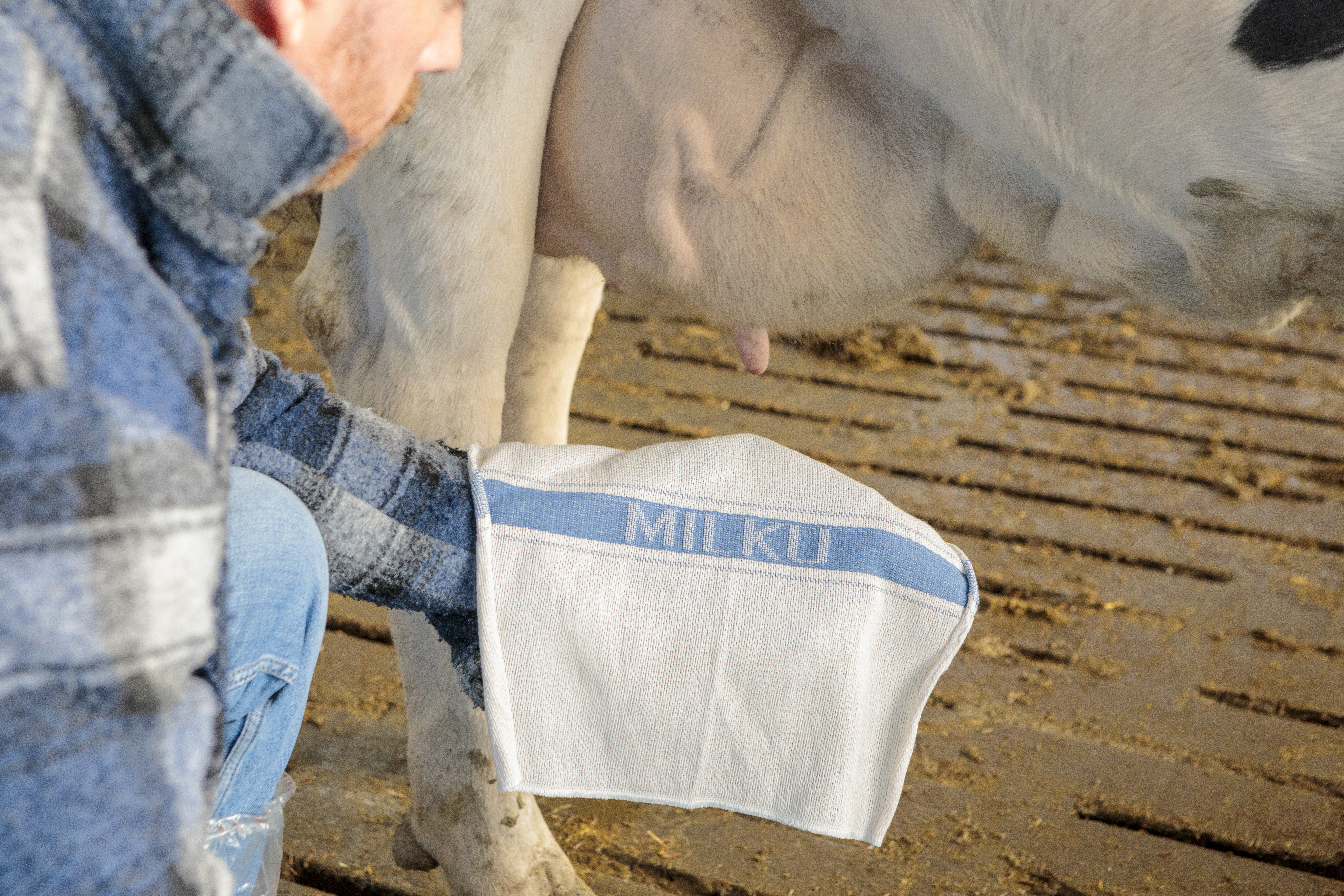 Bei den beliebten Eutertüchern mit MILKU-Einwebung handelt es sich um robuste Baumwolltücher, die lange wiederverwendet werden können. Die quadratischen Tücher (40 x 40 cm) werden aus Recyclinggarnen gewebt und leisten damit bereits bei der Herstellung einen Beitrag zum Umweltschutz. Durch den hohen Baumwollanteil der Fasern ist eine starke Saugkraft sowie ein enormes Schmutzaufnahmevermögen gewährleistet. Waschbar bei bis zu 90 Grad ohne Zugabe von Desinfektionsmittel.