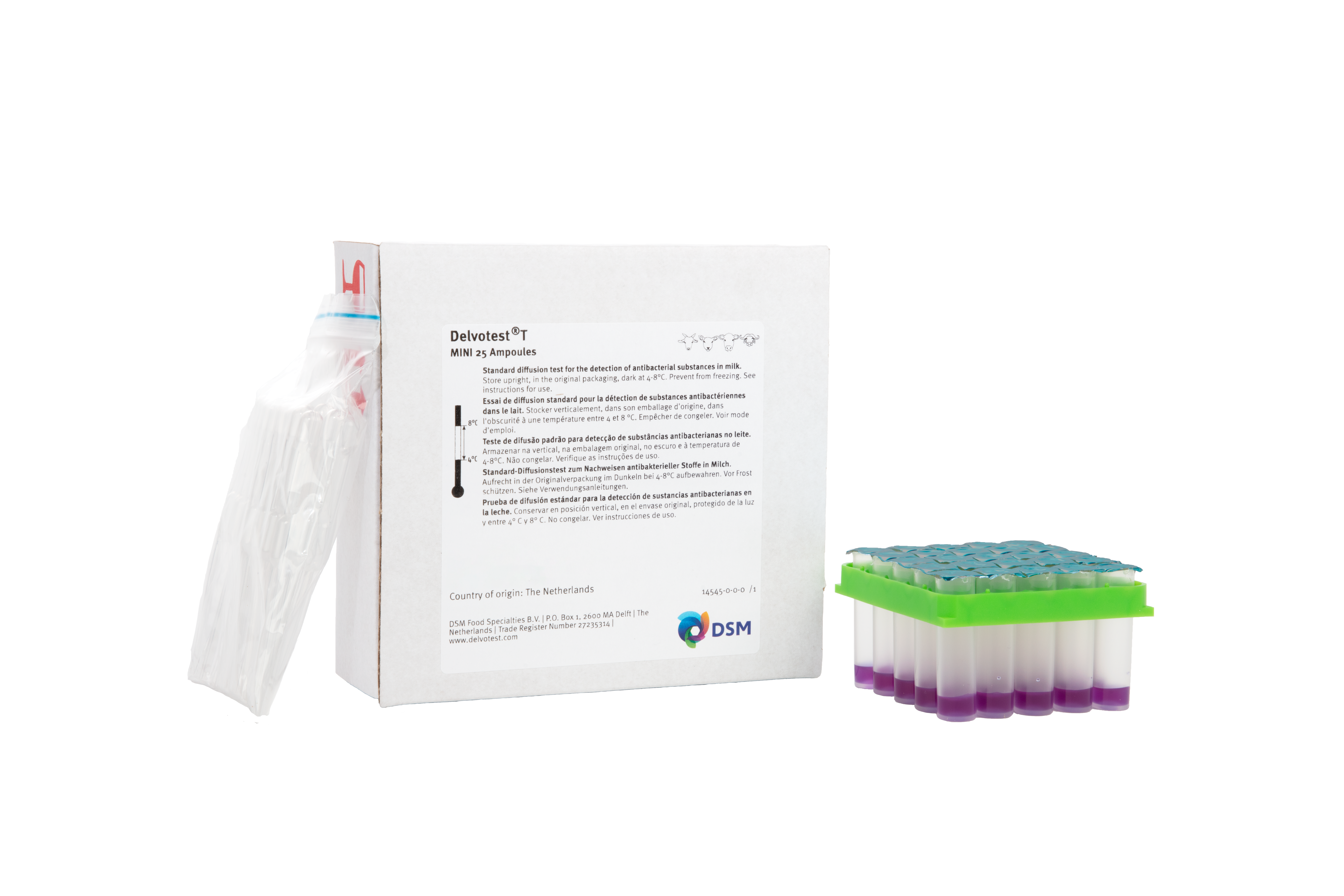 Mit dem Delvotest® T können Antibiotikarückstände in Rohmilch nachgewiesen werden. Der anwendungsfreundliche Breitbandspektrumtest wurde gemäß der Rückstandshöchstmengen entwickelt, sodass antibakterielle Substanzen zuverlässig nachgewiesen und die Vorschriften des deutschen Rohmilchgüterechts eingehalten werden. Somit eignet sich der Hemmstofftest hervorragend als leistungsstarkes Screeningverfahren, um kontaminierte Milch entlang der gesamten Lieferkette zu vermeiden. Die Testergebnisse werden visuell anhand einer Farbkarte interpretiert, nachdem bis zu fünf Ampullen mit dem MILKUstat bzw. bis zu zehn Ampullen mit dem Delvotest® Inkubator